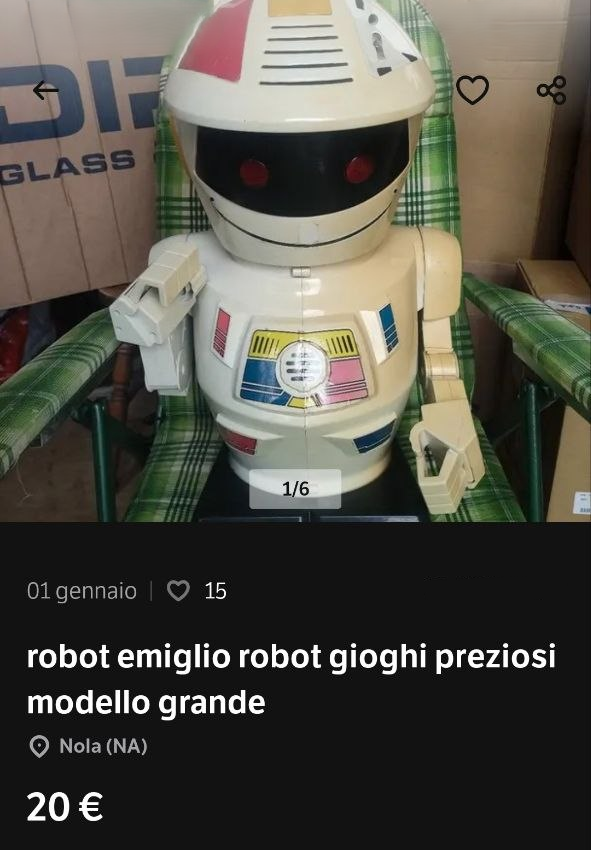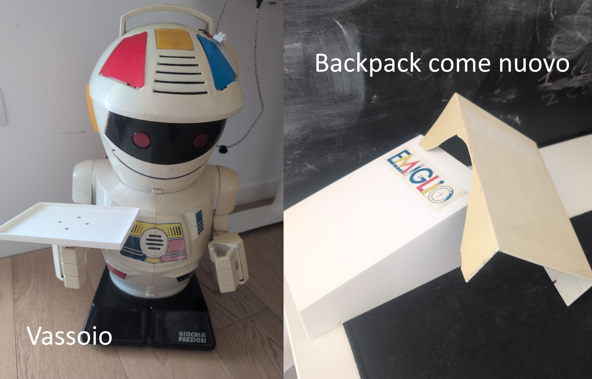 Un giorno, mentre navigo su un sito di usato, mi imbatto in un vecchio Emiglio a 20€. Ho sempre desiderato avere un robot “jarvis” personale come in Iron Man e, senza pensarci un attimo, scrivo al venditore per acquistarlo. Il venditore mi dice che non spedisce, quindi mi metto in macchina e parto per recuperare Emiglio.